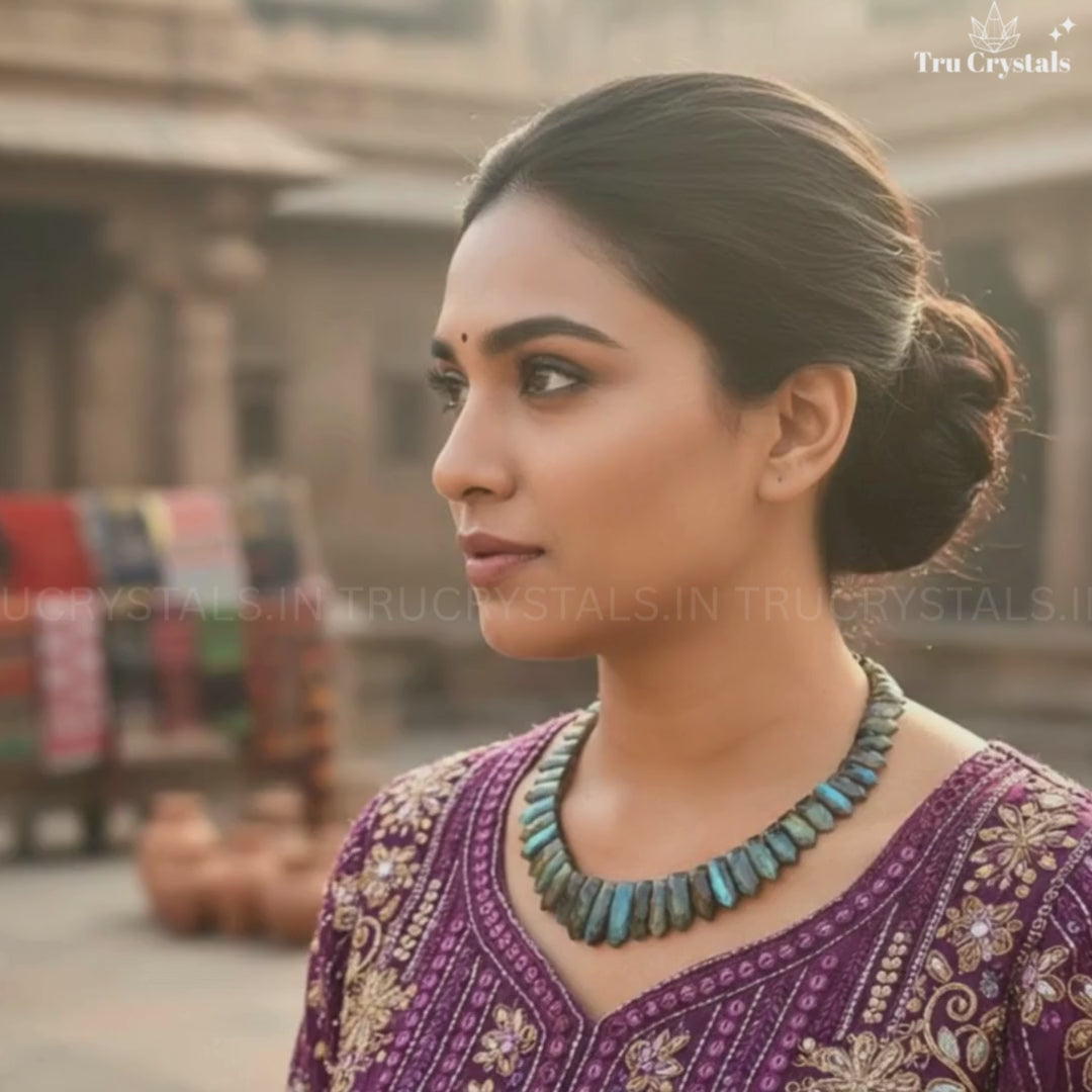 Known as the Stone of Transformation and Magic, Labradorite connects you to your higher consciousness, ignites creativity, and enhances spiritual vision. This bohemian-style statement necklace is perfect for mystics, dreamers, and empaths who wish to walk fearlessly through change while staying beautifully grounded.