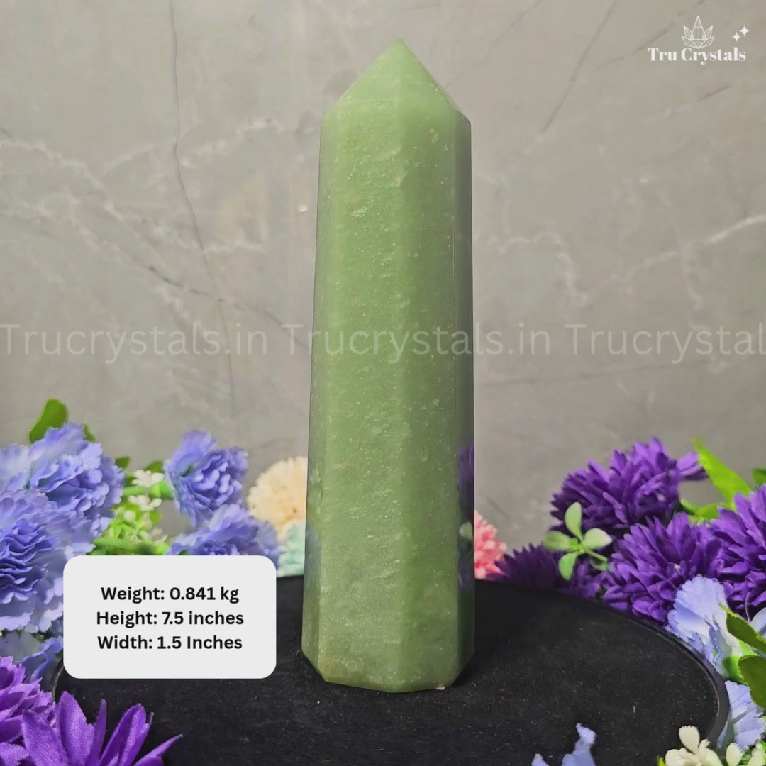 The elegant tower shape helps focus and direct energy, making it perfect for manifestation practices, crystal grids, and energy cleansing rituals. Green Aventurine resonates deeply with the Heart Chakra, encouraging emotional release, compassion, and a positive outlook—especially during times of change and growth.
