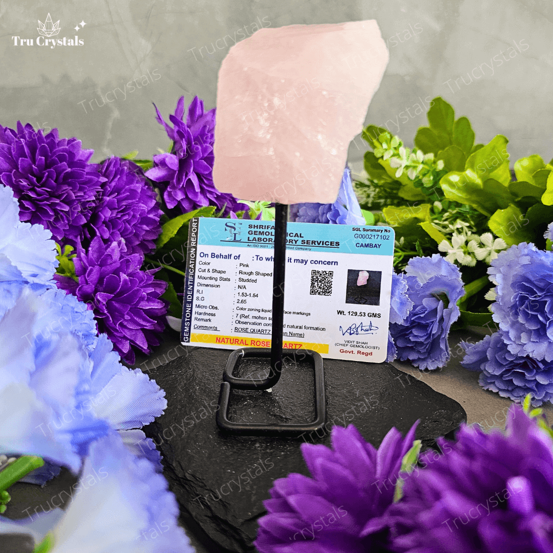 Rose Quartz Rough Display Stand is sure to enhance the ambiance and invite positive energy into your life. Embrace the beauty and serenity of rose quartz with this enchanting addition to your space.