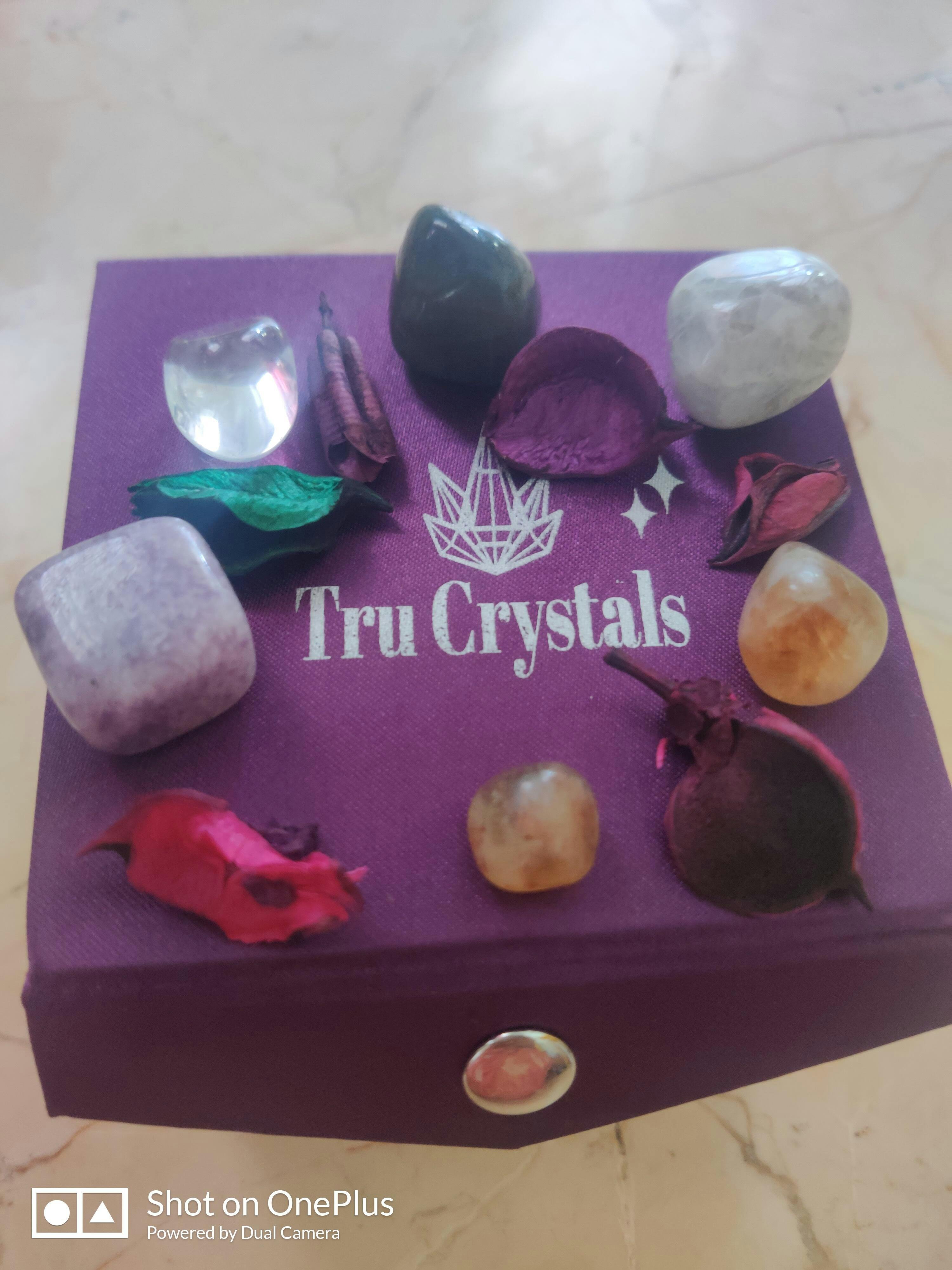 Thank you for sending us tumble stones safely and on time. I loved the tumble stones packed with affirmations card, how to use cards and potpourri flowers in a beautiful box. Clear quartz and citrine tumble stones are little small in size compare to others. Except this everything is wonderful 👍. Thank you Trucystals team.