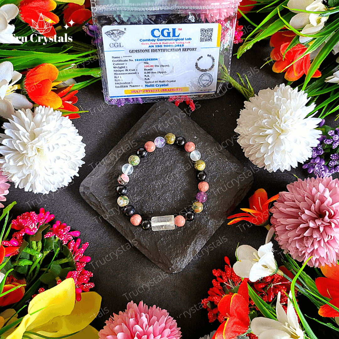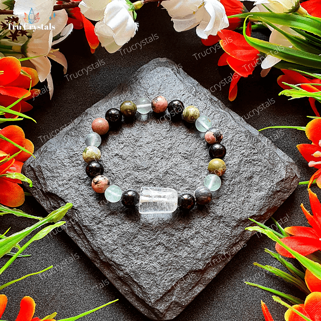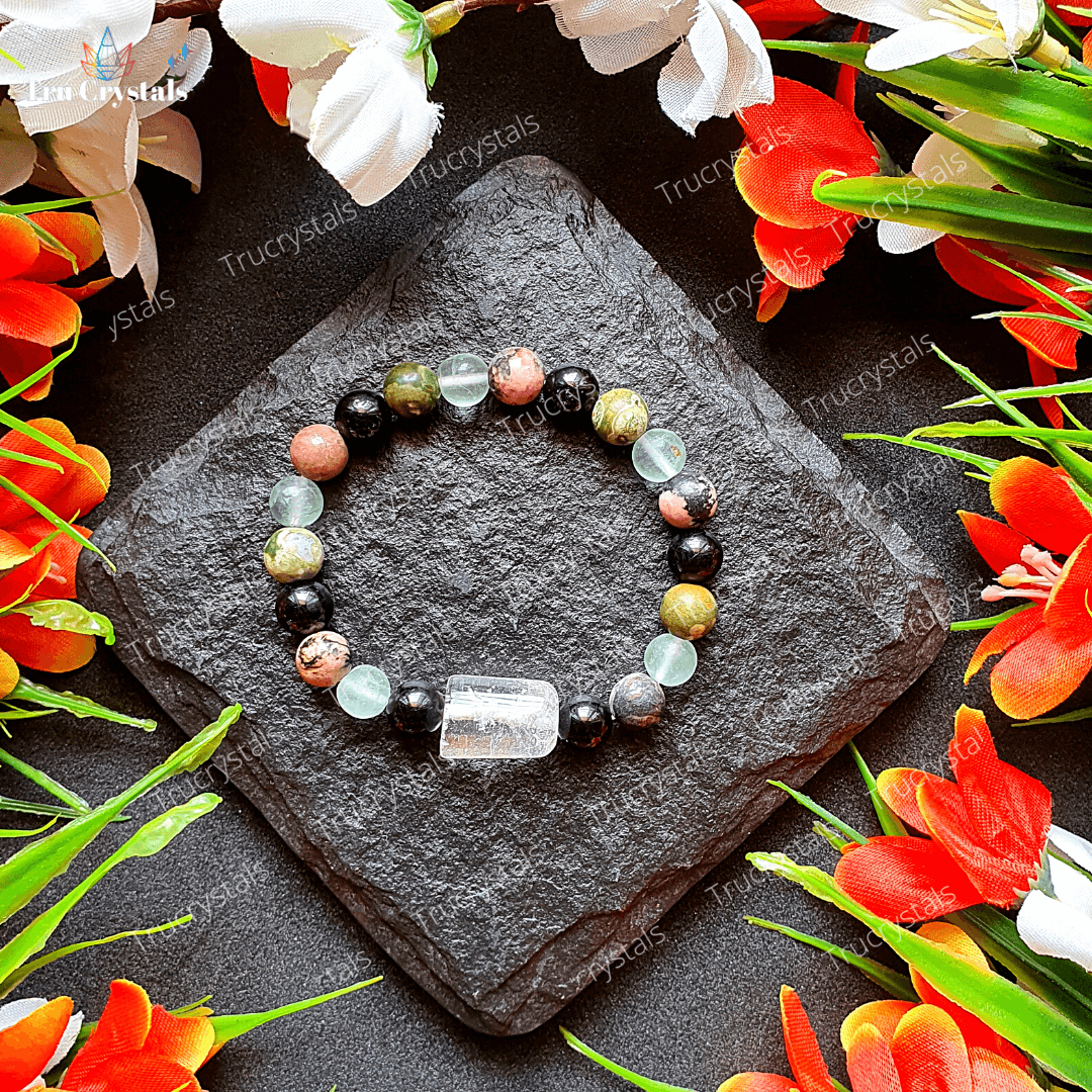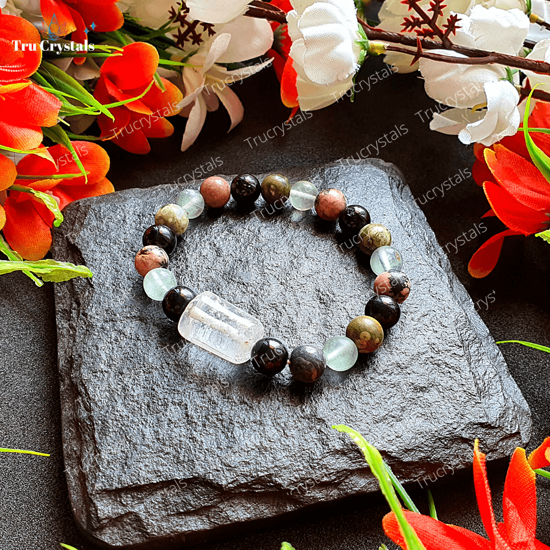 Our Capricorn Zodiac Bracelet is a sophisticated and grounding piece of jewelry designed to resonate with the practical and disciplined energies of the Capricorn zodiac sign. This bracelet features Ocean Jasper, Fluorite, Rhodonite, Black Tourmaline, and Clear Quartz, creating a harmonious combination of gemstones to enhance positive traits.